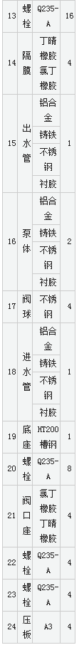 三、由于隔膜將被輸送介質(zhì)和傳動(dòng)機(jī)械件分開(kāi),所以介質(zhì) 不會(huì)向外泄漏。且泵本身無(wú)軸封,使用壽命大大延長(zhǎng)。根據(jù)不同介質(zhì),隔膜分為氯丁橡膠、氟橡膠、丁晴橡膠等,可以滿足不同用戶的要求。