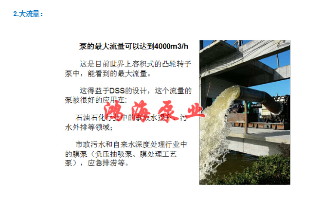 凸輪轉(zhuǎn)子泵亦可稱為容積泵、旋轉(zhuǎn)活塞泵、活塞轉(zhuǎn)子泵,在石油以及市政行業(yè)應(yīng)用 ---中石油、中石化、中海油
