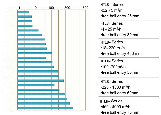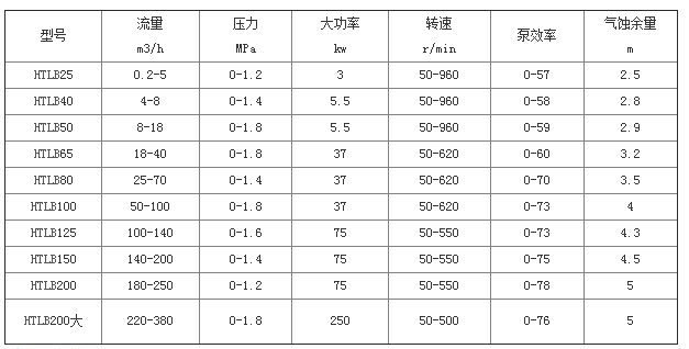 A.HTLB泵共有6個(gè)系列,24中泵型;流量范圍從0.2-4000m3/h