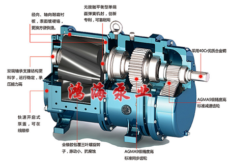 HTLB凸輪轉(zhuǎn)子泵 / 無堵塞排污泵 / 高粘度轉(zhuǎn)子泵是一種容積泵, 別適合輸送各種粘稠、含固體顆粒、纖維、耐磨、要求嚴(yán)格密封、氣液相混、自吸、需正反轉(zhuǎn)輸送等場(chǎng)合。