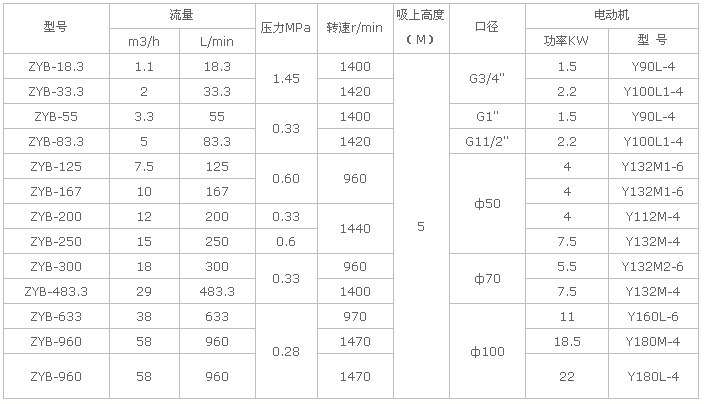 ZYB渣油泵性能參數(shù)表: