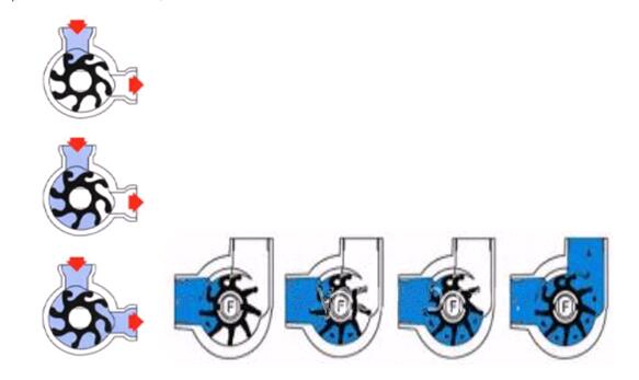 ② 當(dāng)撓性葉片旋轉(zhuǎn)時,液體由泵腔吸入部被帶入排出部。